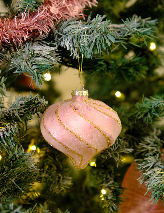 AkceVánoční koule ve tvaru kapky a růžové a zlaté spirálky 10 cm třpytivé