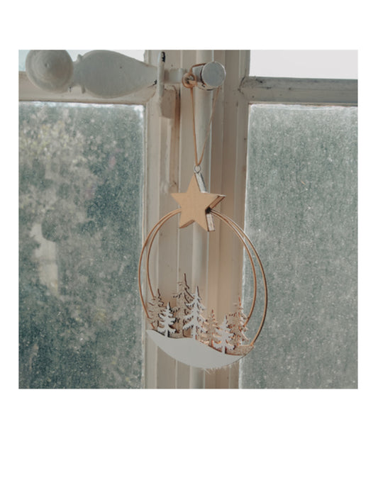 VyprodánoDřevěný závěsný Santa Claus ve svém domě 13 x 11 x 2 cm pro jedle