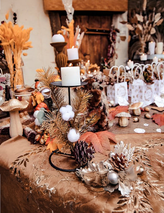 VyprodánoRostlinný svícen bavlněné květy zlatý třpyt 20 cm kov