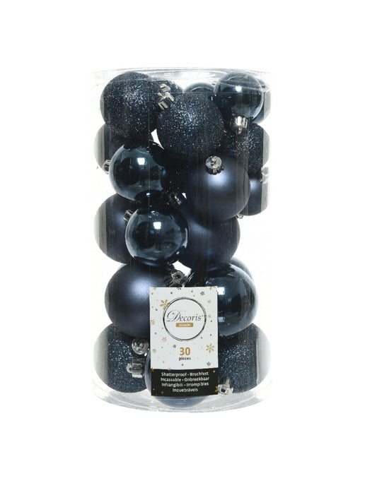 Vyprodáno30 půlnočních modrých vánočních kousků 4 až 6 cm matné a třpytivé