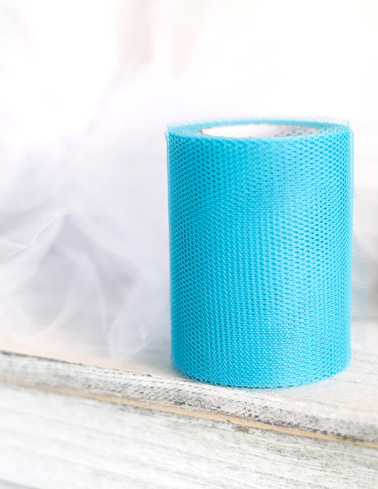 Pastelově modrá plastová sukně na stůl 73 x 426 cm nasbírané lepidlo