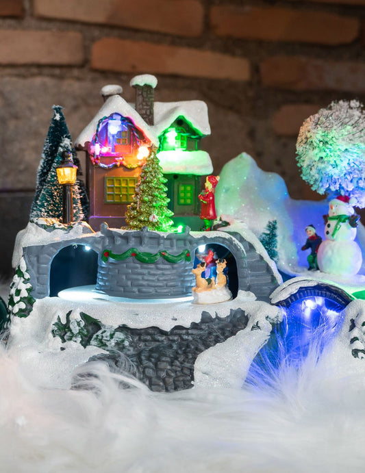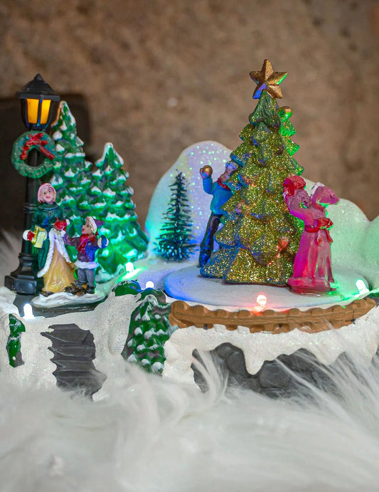 Osvětlený vánoční stromeček ve vesnici 18 x 12 x 13 cm