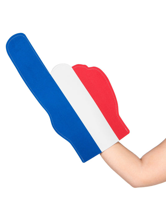 VyprodánoModrobílé a červené chrastítko s motivem francouzského fanouška