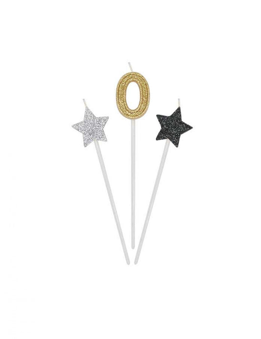 Akce3 zlaté, stříbrné a černé narozeninové svíčky s číslem 16 cm