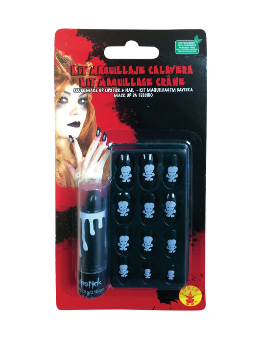 Sada na rtěnku a umělé nehty pro dospělé s lebkou
