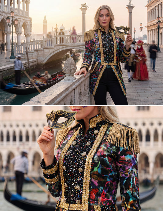 VyprodánoNewLuxusní dámská karnevalová bunda ve vícebarevném stylu Fiesta Carnival