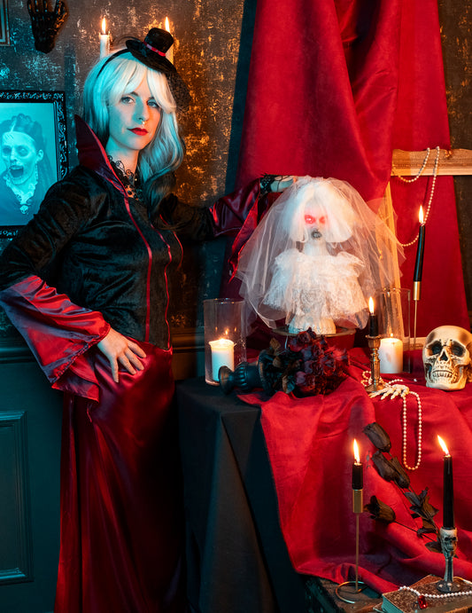 Zahrnuto: klobouk, šaty, rukávy, pásek/šátek