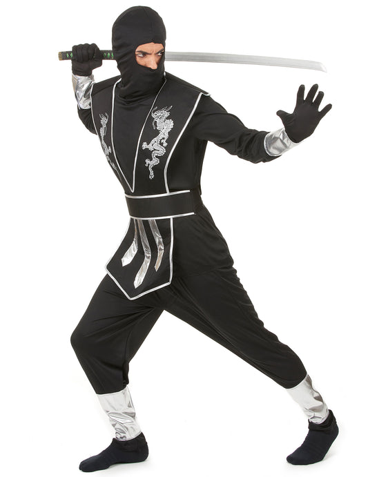 VyprodánoPánský kostým ninja v černém a stříbrném provedení