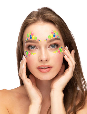 VyprodánoVícebarevné samolepicí kamínky na obličej, které svítí ve tmě