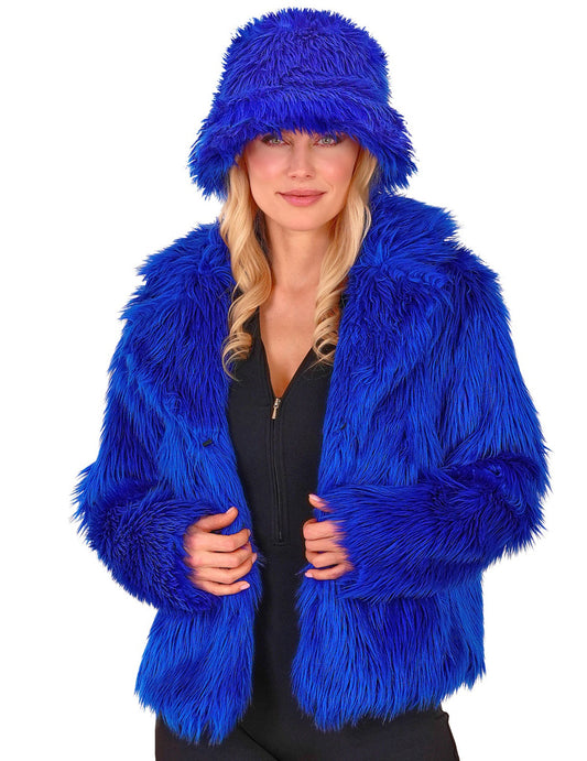 NovinkaDospělý kabát z tmavě modré umělé kožešiny