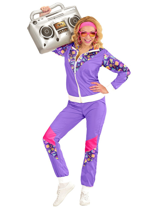 Fialový teplákový kostým z 80. let, velká velikost pro dospělé