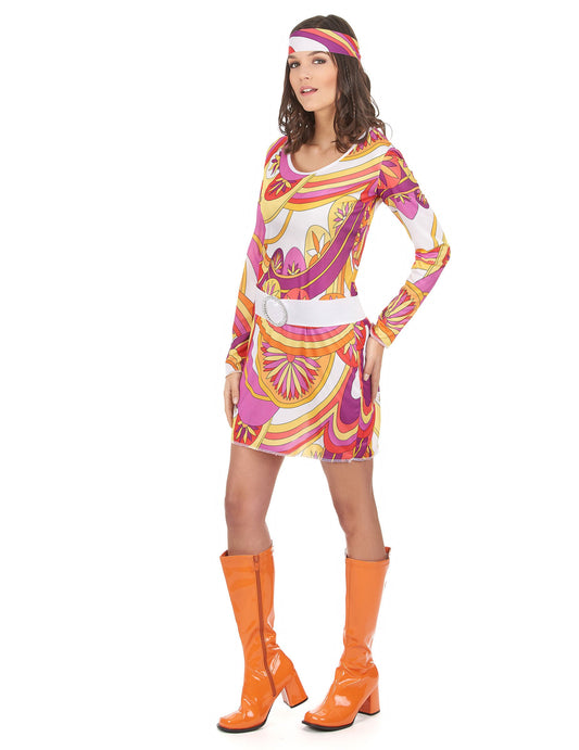 Dámský hippie kostým s růžovým květinovým vzorem