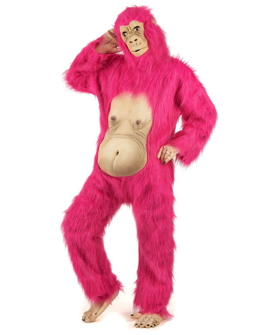 Růžový latexový kostým gorily pro dospělé