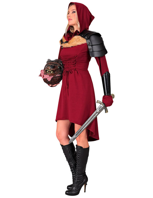 Dámský gotický kostým s kapucí v červené a černé barvě pro větší děti