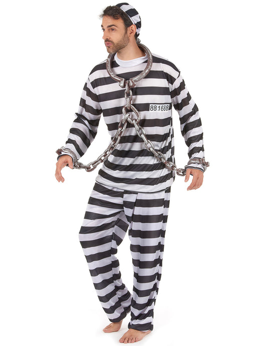 Pánský kostým vězně v černém a bílém provedení