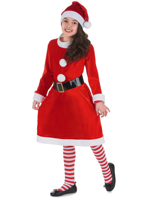 AkceDívčí kostým Matky Vánoc s bílými bambulkami