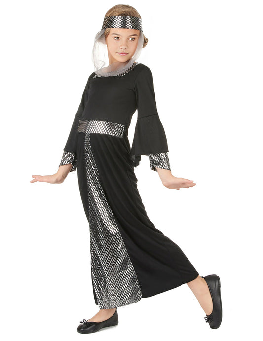 Dívčí kostým středověké královny s nafoukanými rukávy