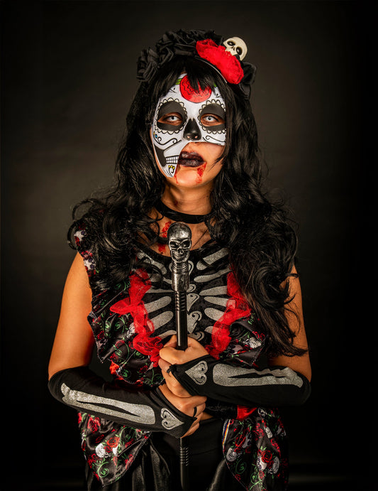 VyprodánoOkouzlující sada na líčení s umělými řasami a šperky Dia de los Muertos pro ženy