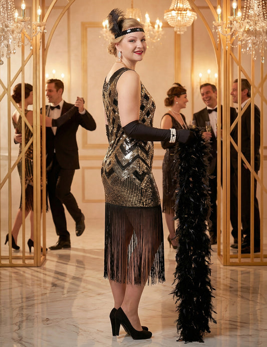 NovinkaLuxusní dámský charlestonový kostým v černé a stříbrné barvě se flitry