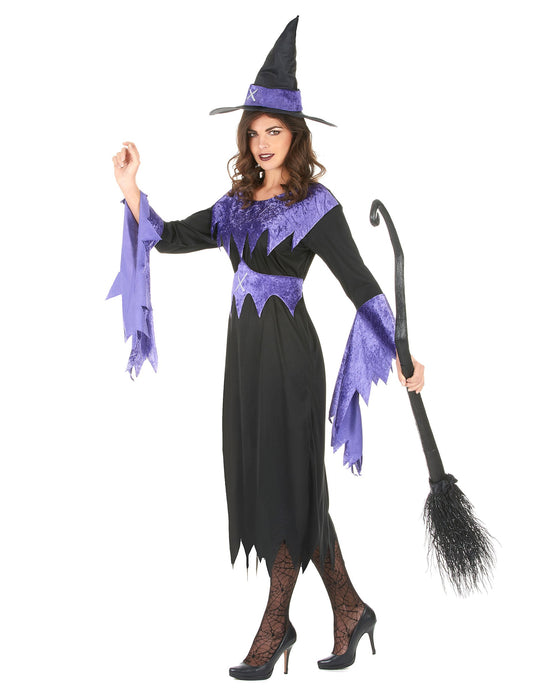 Luxusní černý a fialový kostým čarodějnice pro ženy