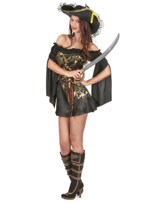 Dámský barokní pirátský kostým v červeném a černém stylu