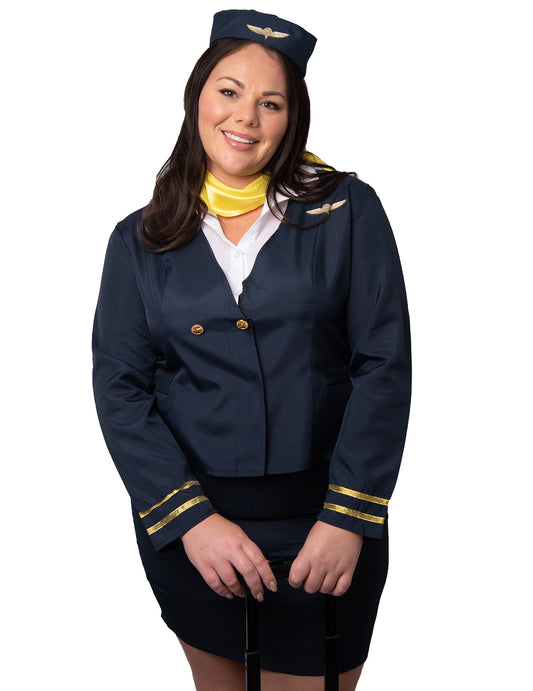 Dámský kostým letušky/stevarda v modré barvě pro větší velikosti