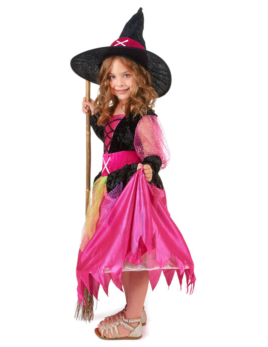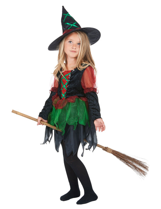 Halloweenský kostým čarodějnice s kloboukem pro dívky