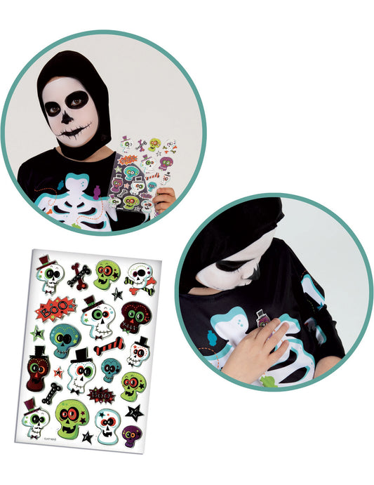VyprodánoDětský kostým kostlivce s aršíkem samolepek
