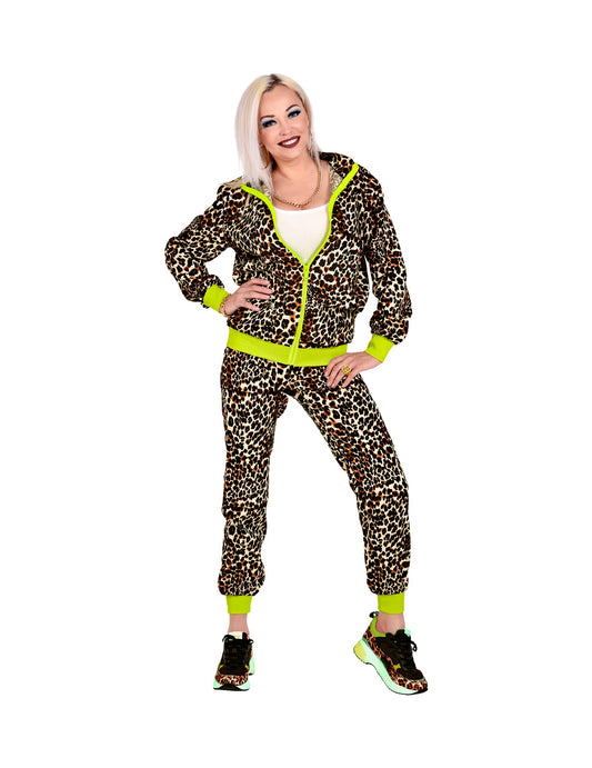 Teplákový kostým s leopardím potiskem v neonových barvách pro větší děti