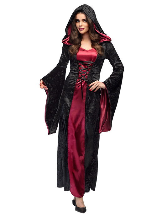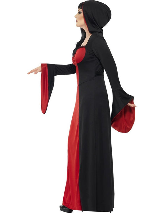 Dámský gotický kostým s kapucí v červené a černé barvě pro větší děti