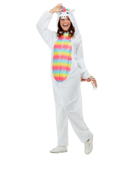 Kostým jednorožce pro dospělé v bílém a vícebarevném provedení