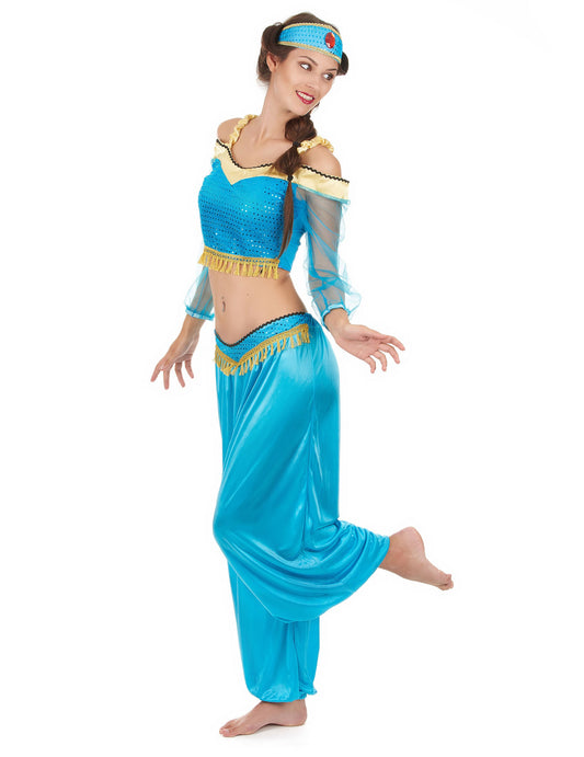 AkceDámský kostým orientální tanečnice v modré a zlaté barvě