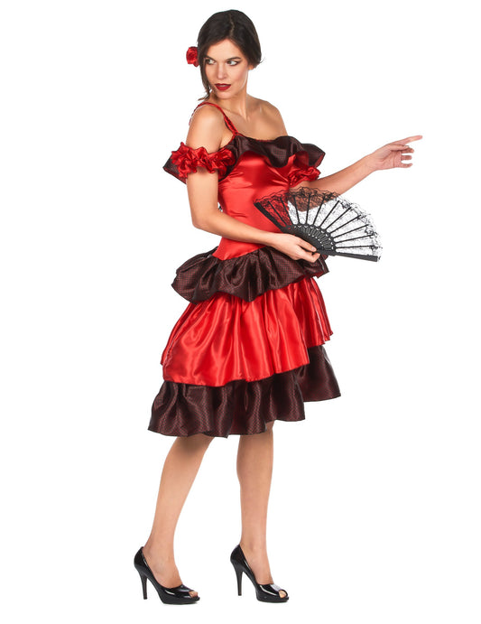 Dámský kostým flamenkové tanečnice v červené a černé barvě