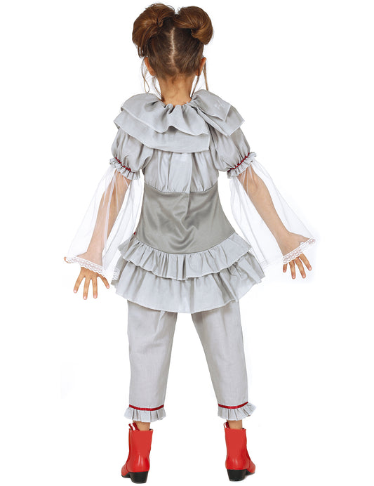 VyprodánoDívčí šedý kostým klauna-asasína
