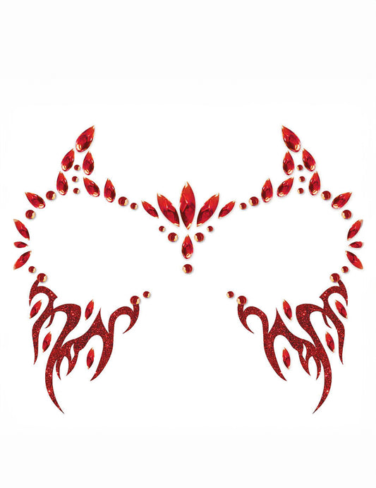 Samolepicí šperky na obličej s červeným planoucím démonem