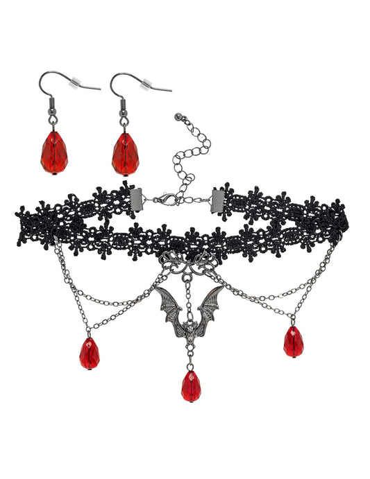 VyprodánoSada červeno-černého gotického chokeru a náušnic