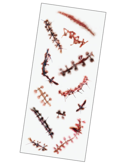 Zahrnuto: 3 kapsle s umělou krví, 1 tuba gelu s umělou krví, 3 sáčky, 1 paleta se 4 barvami, 1 tužka, 1 štětec, 2 houbičky, 1 návod k použití, Umělé lidské tělo, paleta se 4 barvami, Černá tužka, Tekutá umělá krev, 2 houbičky, 1 štětec