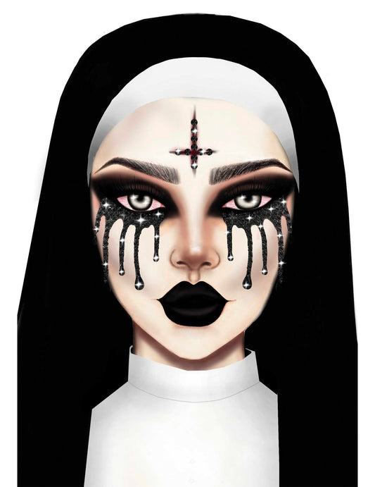 Zahrnuto: 1 černá rtěnka, 10 umělých nehtů ve tvaru lebky