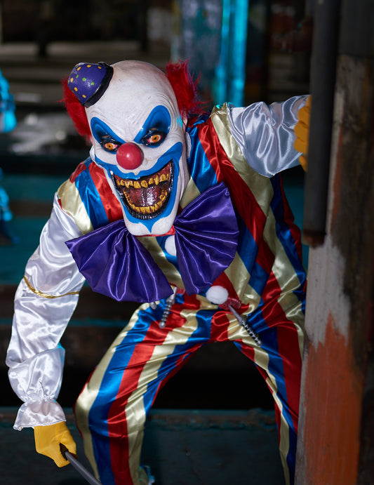 - Krvaví klauni : Macabre masky zdobené falešnou krví a děsivými jizvami.
