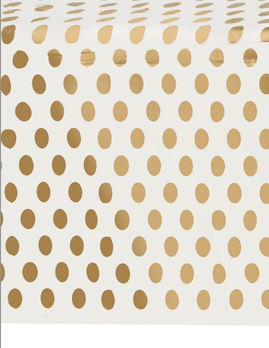 Bílý plastový ubrus se zlatými puntíky 137 x 274 cm na oslavu a narozeniny