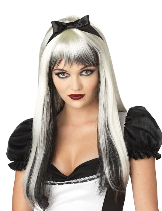 Paruka pro dospělé s dlouhými vlasy a melírem v černé a bílé barvě