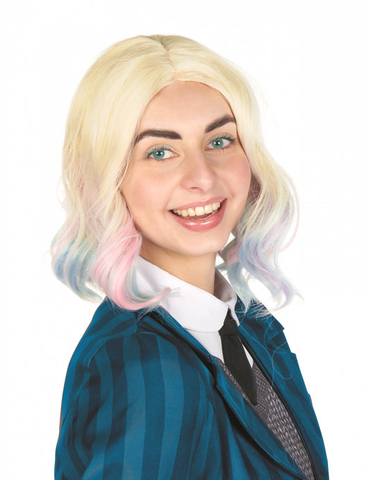 Luxusní vlnitá blond paruka s modrými a růžovými melíry pro dospělé