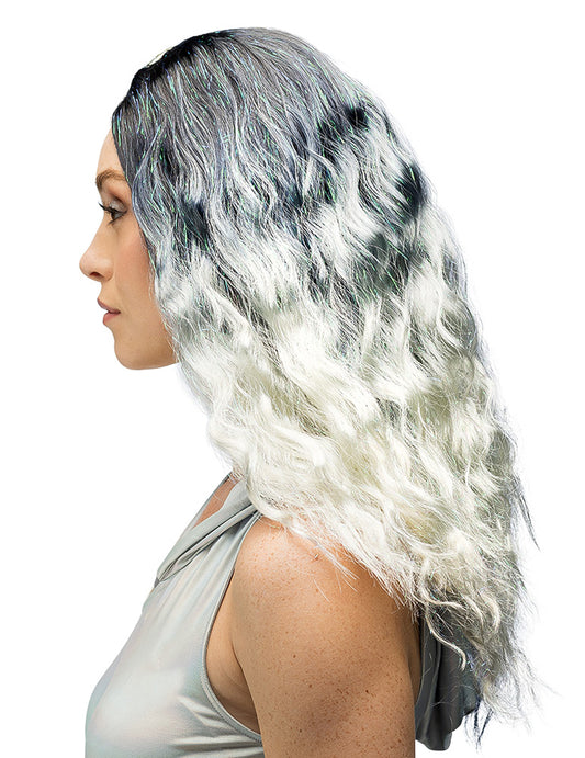 Paruka pro dospělé s dlouhými vlasy a melírem v černé a bílé barvě