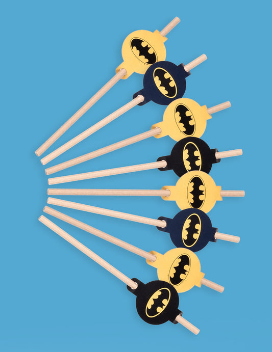 Akce8 kartonových brček ve tvaru medailonku s motivem Batmana o průměru 20 cm