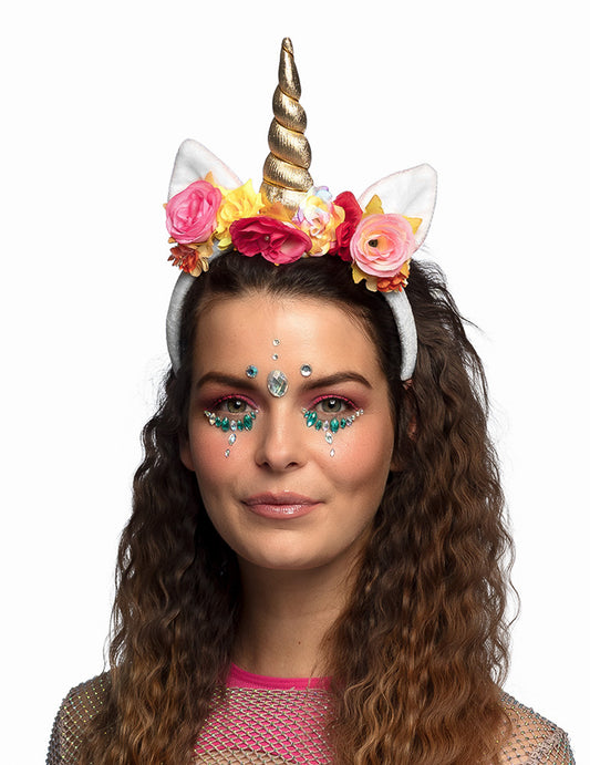 Čelenka pro dospělé s flitrovaným jednorožcem v vícebarevné barvě
