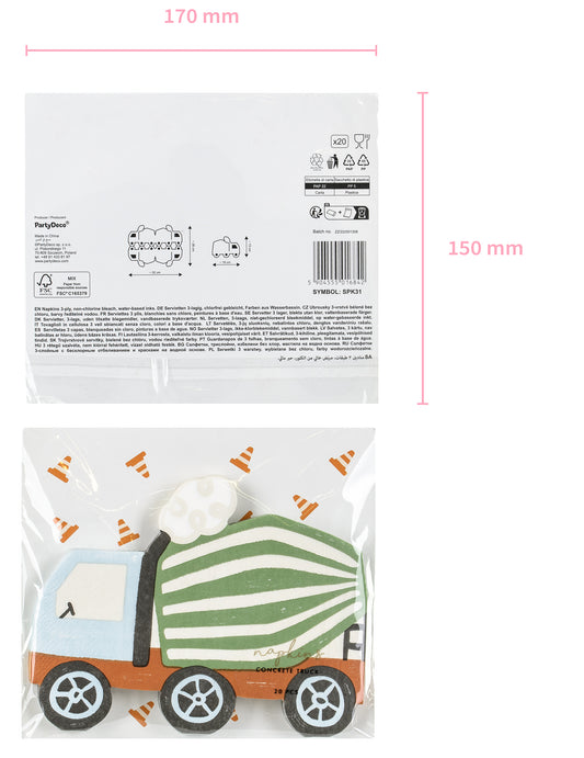 Vyprodáno20 ubrousků s motivem stavebních nákladních automobilů 16 x 13 cm