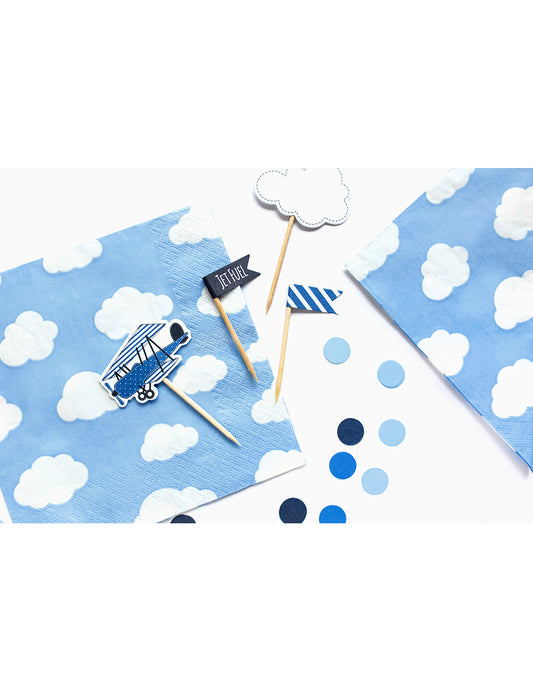 Vyprodáno20 modrých papírových ubrousků s malými bílými obláčky pro miminko