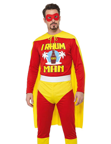 Superheld I Rhum Man humorvolles Herrenkostüm rot-gelb