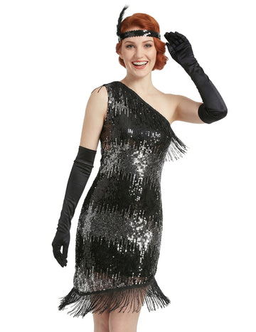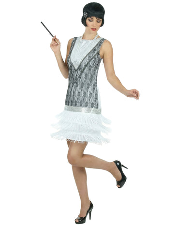 Schwarz-silbernes 20er Jahre-Kostüm für Damen