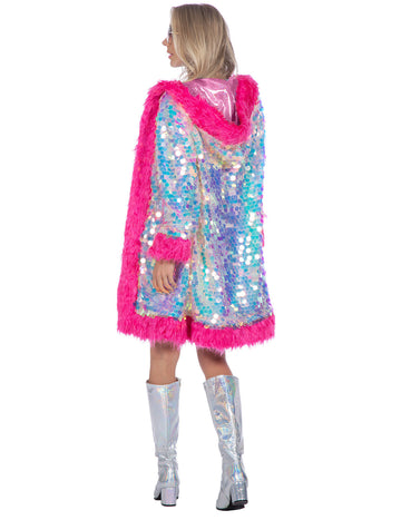 NeuObojstranný ružový kabát s flitrami a umelou kožušinou pre dospelých